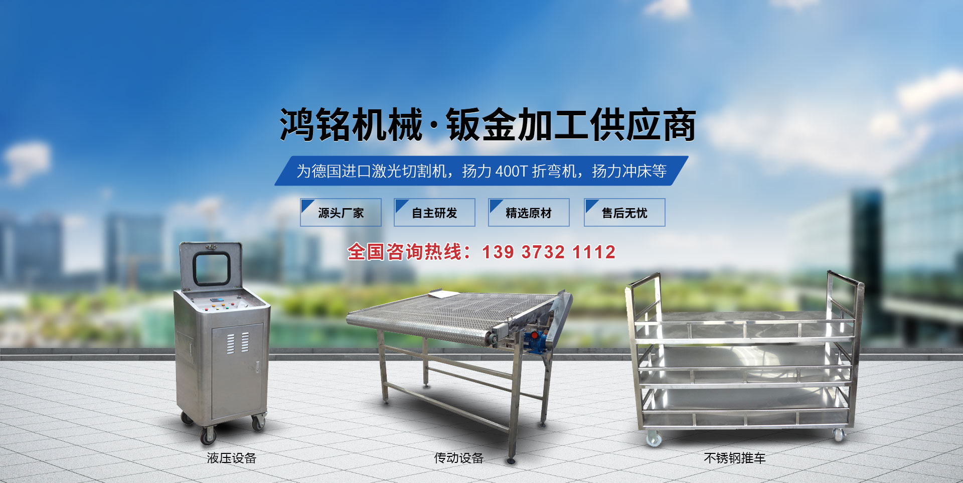 新鄉市鴻銘機械有限公司成立于2009年,占地面積8000平方米,位于新鄉市衛濱區南環路,地理位置優越,交通便利。 本公司設備為德國進口激光切割機,揚力400T折彎機,揚力沖床等設備。主要從事鈑金加工、及生產各類金屬鈑金零部件及生產各類沖壓零件。  公司長期與國內外大型企業合作深受新老客戶的贊賞,同時公司對外承接各類鈑金加工業務(標準鈑金件與非標鈑金件),先后為多家知名企業配套加工鈑金,公司也可根據客戶的需要代為設計,尤其對精度、外觀要求高的產品有獨到的生產經驗。 我們本著"科學管理、全員參與、持續改進、滿足客戶"的質量方針來生產我們的每一件產品。為了在市場競爭中立于不敗之地,公司以質量求生存,以設備保精度。歡迎新老客戶到本公司實地考察。  本企業建立以來,以"質量保證,信譽保證,交貨及時,價格合理"為宗旨,贏得了客戶的一致好評。面對市場經濟的挑戰,公司將以產品和服務參與市場競爭,為廣大客戶提供鈑金加工平臺。
